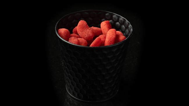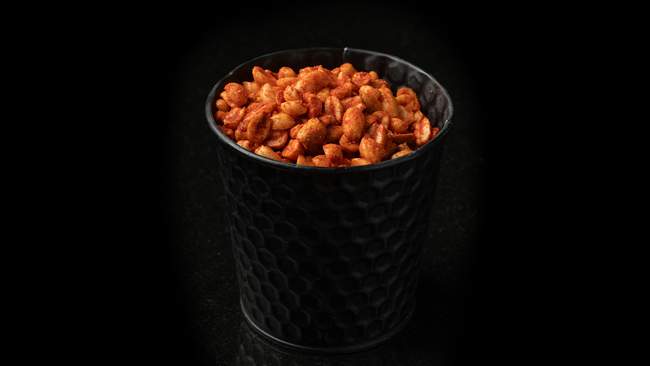 Cacahuate enchilado (100 gr), cacahuate japonés (100 gr), churrito (140 gr) y gomitas de mango enchiladas (50 gr).